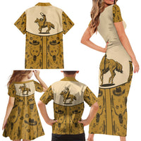 Cowboy Family Matching Short Sleeve Bodycon Dress and Hawaiian Shirt Horse Riding Retro Western Yoke Beige