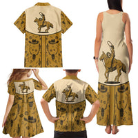 Cowboy Family Matching Tank Maxi Dress and Hawaiian Shirt Horse Riding Retro Western Yoke Beige DT05
