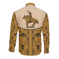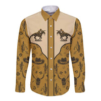 Cowboy Long Sleeve Button Shirt Horse Riding Retro Western Yoke Beige
