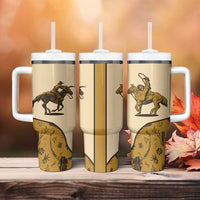 Cowboy Tumbler With Handle Horse Riding Retro Western Yoke Beige DT05