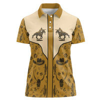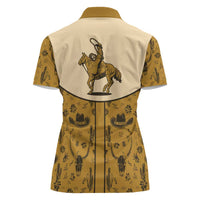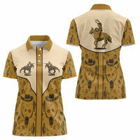 Cowboy Women Polo Shirt Horse Riding Retro Western Yoke Beige