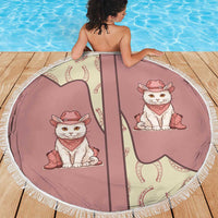 Cowcat Beach Blanket Cowboy Cat Meowdy Retro Western Yoke Pink