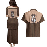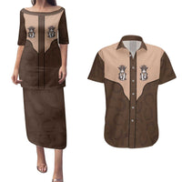 Cowcat Couples Matching Puletasi and Hawaiian Shirt Cowboy Cat Meowdy Retro Western Yoke Brown