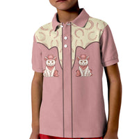 Cowcat Kid Polo Shirt Cowboy Cat Meowdy Retro Western Yoke Pink DT05