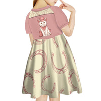 Cowcat Kid Short Sleeve Dress Cowboy Cat Meowdy Retro Western Yoke Pink DT05