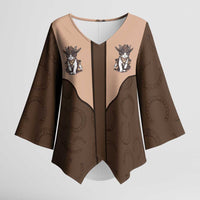Add a chic touch to your wardrobe with the Cowcat Kimono Sleeve Blouse Cowboy Cat Meowdy Retro Western Yoke Brown from Wonder Print Shop. Designed for versatility, this V-neck blouse features flowing kimono-style sleeves and a relaxed fit — perfect for both casual and dressy occasions. Crafted with premium polyester fabric, it offers a soft, lightweight feel for all-day comfort.
