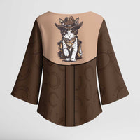 Step into effortless style with the Cowcat Kimono Sleeve Blouse Cowboy Cat Meowdy Retro Western Yoke Brown by Wonder Print Shop. Perfect for work, brunch, or a casual night out.