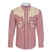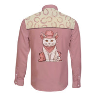 Cowcat Long Sleeve Button Shirt Cowboy Cat Meowdy Retro Western Yoke Pink DT05
