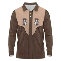 Cowcat Long Sleeve Polo Shirt Cowboy Cat Meowdy Retro Western Yoke Brown