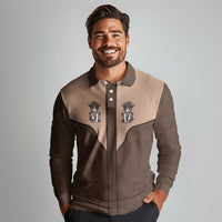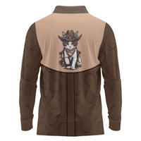 Cowcat Long Sleeve Polo Shirt Cowboy Cat Meowdy Retro Western Yoke Brown DT05