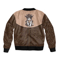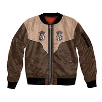Cowcat Sleeve Zip Bomber Jacket Cowboy Cat Meowdy Retro Western Yoke Brown