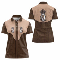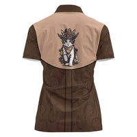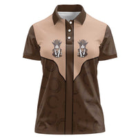 Cowcat Women Polo Shirt Cowboy Cat Meowdy Retro Western Yoke Brown DT05