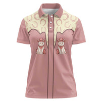Cowcat Women Polo Shirt Cowboy Cat Meowdy Retro Western Yoke Pink