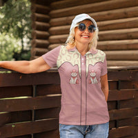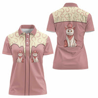 Cowcat Women Polo Shirt Cowboy Cat Meowdy Retro Western Yoke Pink DT05