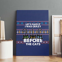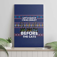 Crazy Cat Lover Canvas Wall Art with Black Cats and Funny Quote in Blue Holiday Knit Pattern Design TS04
