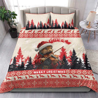 Croatia Christmas Bedding Set Pine Marten Playing Violin - Red Color