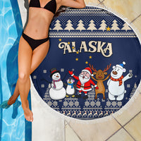 Custom Alaska Christmas Beach Blanket Santa Claus With Snowman Reindeer Penguin