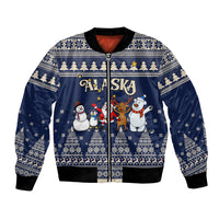 Custom Alaska Christmas Bomber Jacket Santa Claus With Snowman Reindeer Penguin