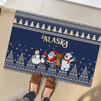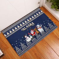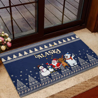 Custom Alaska Christmas Rubber Doormat Santa Claus With Snowman Reindeer Penguin