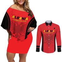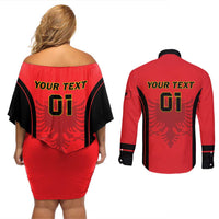Custom Albania 2024 Football Couples Matching Off Shoulder Short Dress and Long Sleeve Button Shirt Come On Kuqezinjte