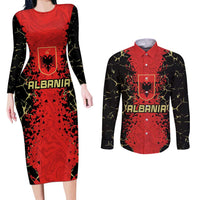Custom Albania Football 2024 Go Champion Couples Matching Long Sleeve Bodycon Dress and Long Sleeve Button Shirt LT03