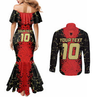 Custom Albania Football 2024 Go Champion Couples Matching Mermaid Dress and Long Sleeve Button Shirt