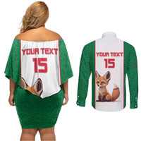 Custom Algeria Football Couples Matching Off Shoulder Short Dress and Long Sleeve Button Shirt Go Fennec Foxes
