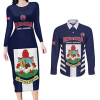 Custom Bermuda Football Couples Matching Long Sleeve Bodycon Dress and Long Sleeve Button Shirt 2025 Go Gombey Warriors - Blue
