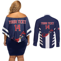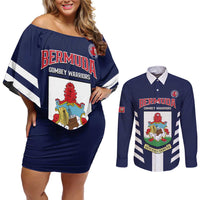 Custom Bermuda Football Couples Matching Off Shoulder Short Dress and Long Sleeve Button Shirt 2025 Go Gombey Warriors - Blue