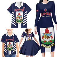 Custom Bermuda Football Family Matching Long Sleeve Bodycon Dress and Hawaiian Shirt 2025 Go Gombey Warriors - Blue