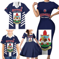 Custom Bermuda Football Family Matching Short Sleeve Bodycon Dress and Hawaiian Shirt 2025 Go Gombey Warriors - Blue