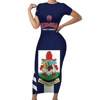 Custom Bermuda Football Short Sleeve Bodycon Dress 2025 Go Gombey Warriors - Blue LT14