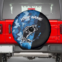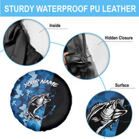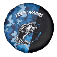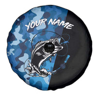 Custom Blue Camo Bass Fishing Spare Tire Cover Fishing Rod Graphic Design TS04