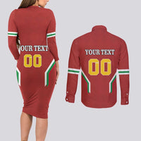 Custom Bulgaria Football Couples Matching Long Sleeve Bodycon Dress and Long Sleeve Button Shirt The Lions Come Champions Red Version LT18