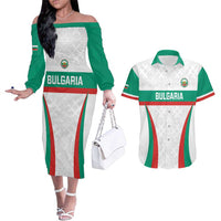 Custom Bulgaria Football Couples Matching Off The Shoulder Long Sleeve Dress and Hawaiian Shirt Bulgarian Pattern Sporty Style LT14