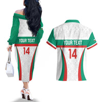 Custom Bulgaria Football Couples Matching Off The Shoulder Long Sleeve Dress and Hawaiian Shirt Bulgarian Pattern Sporty Style