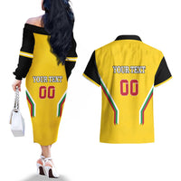 Custom Bulgaria Football Couples Matching Off The Shoulder Long Sleeve Dress and Hawaiian Shirt The Lions Come Champions Yellow Version LT18