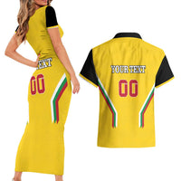 Custom Bulgaria Football Couples Matching Short Sleeve Bodycon Dress and Hawaiian Shirt The Lions Come Champions Yellow Version LT18