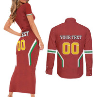 Custom Bulgaria Football Couples Matching Short Sleeve Bodycon Dress and Long Sleeve Button Shirt The Lions Come Champions Red Version LT18