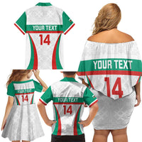 Custom Bulgaria Football Family Matching Off Shoulder Short Dress and Hawaiian Shirt Bulgarian Pattern Sporty Style