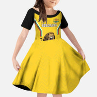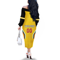 Custom Bulgaria Football Family Matching Off The Shoulder Long Sleeve Dress and Hawaiian Shirt The Lions Come Champions Yellow Version
