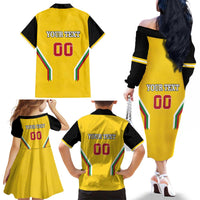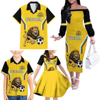 Custom Bulgaria Football Family Matching Off The Shoulder Long Sleeve Dress and Hawaiian Shirt The Lions Come Champions Yellow Version LT18