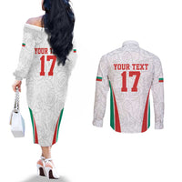 Custom Bulgaria Football We are Champions Couples Matching Off The Shoulder Long Sleeve Dress and Long Sleeve Button Shirt Sporty Style with Lion Mascot