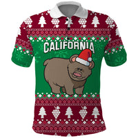 Custom California Christmas Polo Shirt Santa Grizzly Bear With Grape
