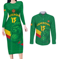 Custom Cameroon Basketball Couples Matching Long Sleeve Bodycon Dress and Long Sleeve Button Shirt Go Champions Indomitable Lions LT15