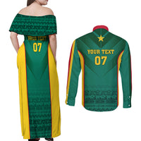 Custom Cameroon Football Couples Matching Off Shoulder Maxi Dress and Long Sleeve Button Shirt Nations Cup 2024 Les Lions Indomptables