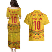 Custom Cameroon Football Couples Matching Puletasi and Hawaiian Shirt Tribal Motifs Yellow Color
