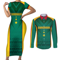 Custom Cameroon Football Couples Matching Short Sleeve Bodycon Dress and Long Sleeve Button Shirt Nations Cup 2024 Les Lions Indomptables