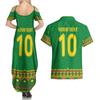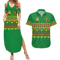 Custom Cameroon Football Couples Matching Summer Maxi Dress and Hawaiian Shirt Tribal Motifs Green Color LT03
