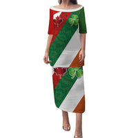 Custom Canada and Ireland Puletasi Shamrocks and Maple Leaves